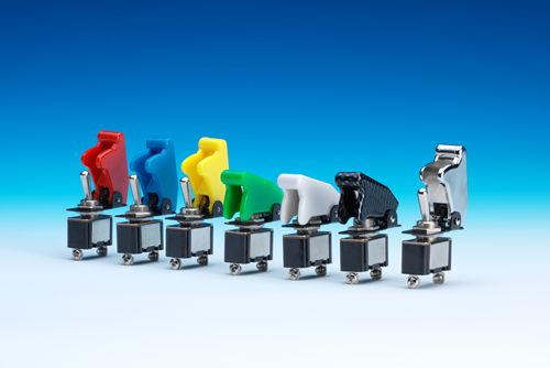 TOGGLE SWITCHES FITTED WITH FLIP-UP AIRCRAFT TYPE COVERS.